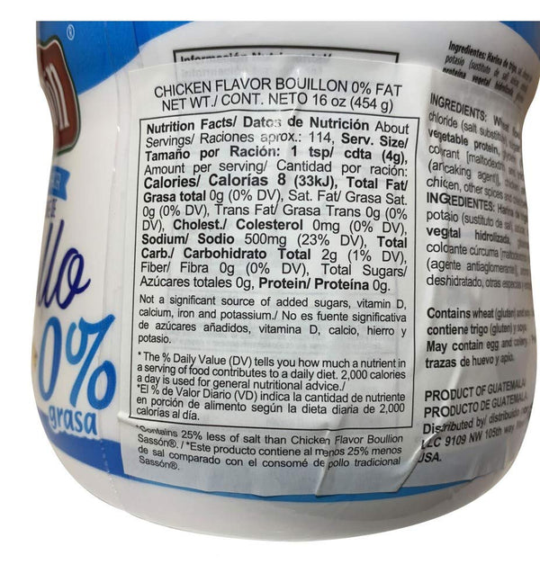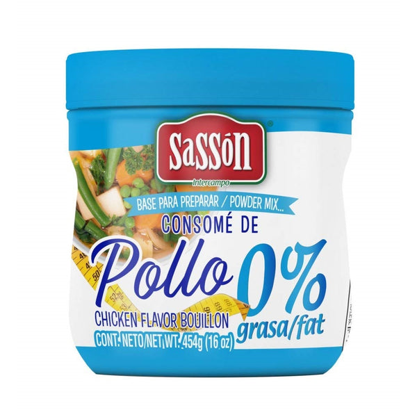 Sasson Chicken Flavor Bouillon Fat Free 16oz - Base Para Preparar Consome de Pollo Intercampo